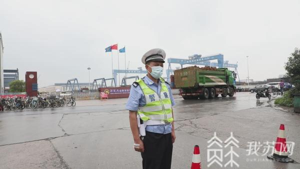 今天(7月19号)中午12点,扬州仪征市公安局交警大队大仪中队民警詹德宏刚刚结束输液,再一次回到仪征市经济开发区国和路招商局金陵船舶(江苏)有限公司门口路段执勤。