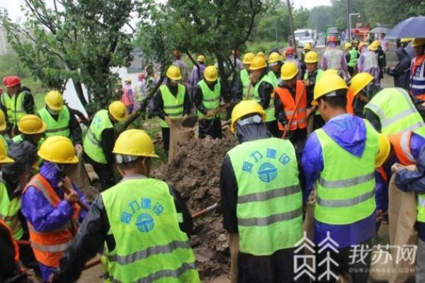 汛情就是命令,江心洲街道防汛应急突击队接到通知后,组织黄土6车、挖掘机2台、应急抢险分队200余人,携带麻袋1000条、铁锹70把,20分钟内迅速赶往现场。