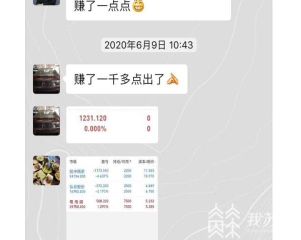 今年6月初,沈女士被一位刚添加的微信好友拉进了一个聊天群,群主经常会分享一些长势比较好的个股,不少群友也都跟着赚了钱,沈女士心动不已。