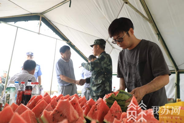 还有一位已经退伍多年的老兵也时刻关注防汛前线的动态。今年68岁的侯国良上世纪70年代曾在南海舰队服过役,对部队有着特别的感情,当天他从自家果园里采摘了新鲜水果特地前来慰问前线战士。他告诉记者:“在水里、在泥里那种感觉我是非常有体会的,因为我也当过兵、也抗过洪。现在的人民子弟兵一心一意为人民、为百姓利益奋战在抗洪第一线,我非常感动。”