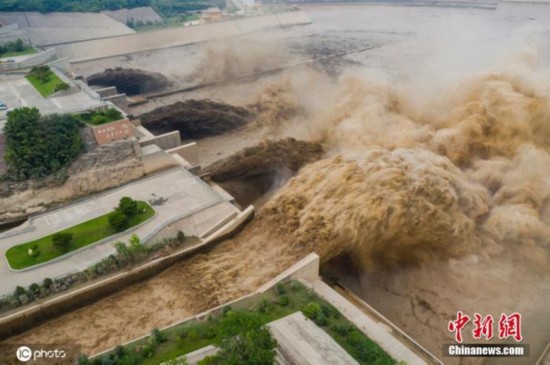 资料图:7月9日,河南省洛阳市,黄河小浪底开始排沙后,携带大量泥沙的混浊水流从排沙洞奔腾而出,再现黄河之水天上来的美景。图片来源:IC photo