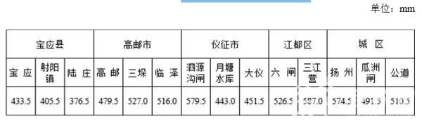 截至 7 月19日 20 时,扬州市面平均梅雨总量已达 493.2mm,比常年多114.2%,最大降雨量点为江都区三江营 站(587.0mm),比常年偏多150.2%,最小降雨量点为宝应县陆庄站(376.5mm),比常年偏多68.0%。