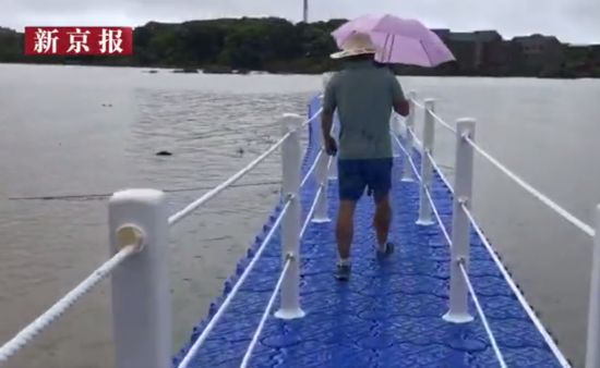 新京报讯(记者 逯仲胜 李阳 吴荣奎)7月20日,此前被大水围困而成为“孤岛”的江西鄱阳莲湖乡龙口村,建起了一座浮筒桥。原先村民出行只能靠船,每次需近20分钟,如今只需几分钟,步行通过浮筒桥即可出行。