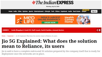 《印度快报》:Jio公司的5G分析,5G方案对该公司及其用户意味着什么