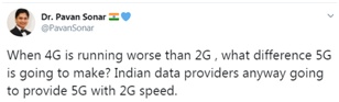 “当4G比2G运行速度更差的时候,5G又能有什么不同呢?无论如何,印度数据运营商们都会以2G的速度提供5G吧。”