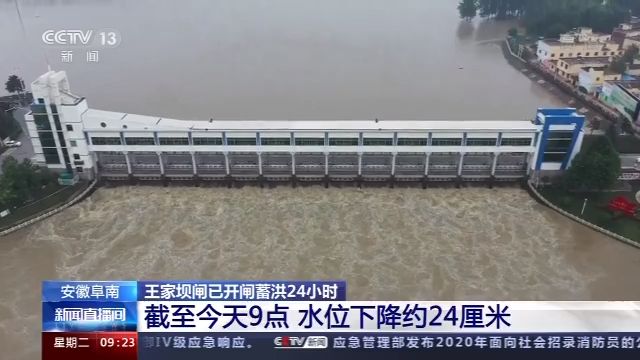 安徽地处江淮地区,受长江和淮河来水的双重影响,因此防汛压力很大。而为了缓解淮河防汛压力,昨天(20日),安徽境内多个行蓄洪区开始蓄洪。位于安徽阜南县的王家坝闸昨天8时31分开闸蓄洪,将河水导入蒙洼蓄洪区。经过了24小时,水位有什么变化?蓄洪区内的情况怎么样?我们马上来连线正在王家坝闸的总台央视记者林舟。