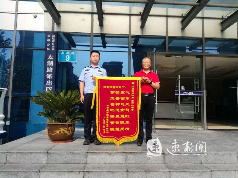20日上午,陈士润给宿迁市公安局宿城分局太湖路派出所民警李林朴送去了锦旗,表达自己的感谢之情。