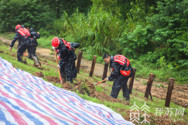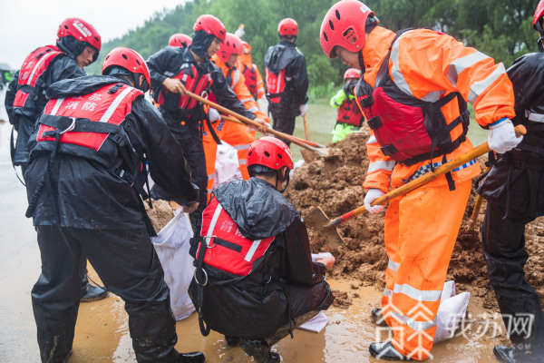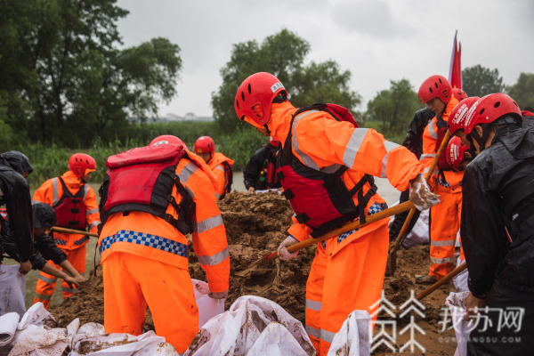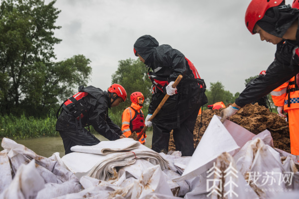 南京市消防救援支队作战训练处参谋温彦周介绍,他们当天中午接到防汛指挥部紧急命令,南京市消防救援支队驻八卦洲备勤点170名指战员赶赴险情的江堤段。江堤因为雨水的长期冲刷出现了滑坡和渗水的迹象,消防指战员第一时间对滑坡江堤进行了打桩稳固,挖筑了导渗渠,填埋了沙子和石子进行导渗。对雨水长期冲刷的江堤进行雨布的覆盖,江堤稳固完毕之后,在稳固桩后面构筑了反压平台,反压平台对江堤进一步进行稳固,江堤稳固完毕之后,消防指战员会安排人员24小时对险情的江堤进行巡查,保证随时发现,随时处置。