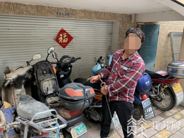 在对大量的案件进行分析研判后,今年4月份一起盗窃电动车电瓶案的周边监控视频引起了办案民警的注意,一个骑深色电动车的男子纳入了民警视线。该辆电动车特征明显,电瓶装在电动车的踏板上,而在5月份的一起电动车电瓶被盗案的小区监控显示,该男子曾骑着同一辆电动车到过案发小区。