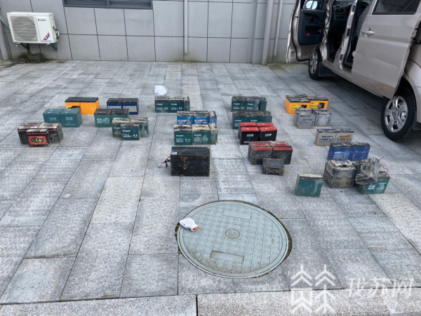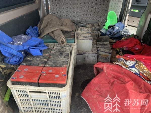 民警随即转战安徽宣城,在当地公安机关的配合下找到了犯罪嫌疑人的这辆面包车并一直蹲守在该车附近。至6月19日凌晨1时许,就在嫌疑人掀开面包车后备箱,准备搬电动车的那一刻,被蹲守的办案民警一举擒获。民警当场从电动车上缴获3组电瓶,从面包车上缴获17组电瓶,一共93只电瓶。