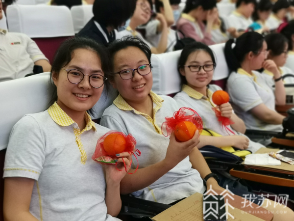 本次毕业典礼的主题是“橙心如诗,青春飞扬”,每一个同学都收到了学校赠送的橙子,寓意“成长、成才、成年、成功”。