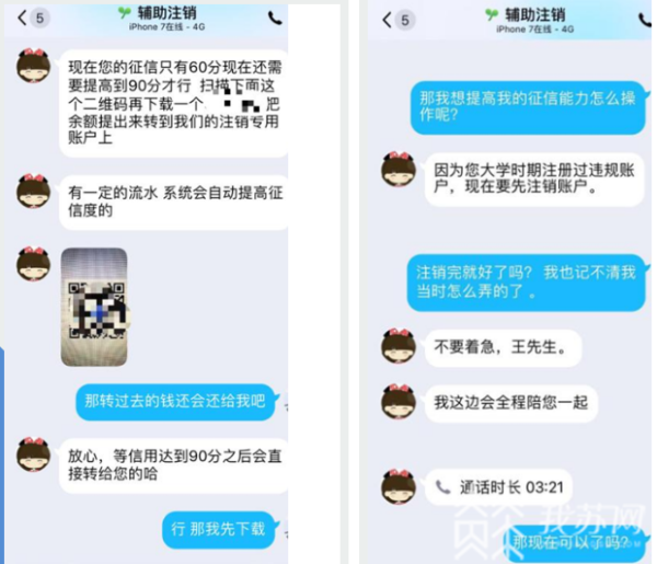 今天(7月21日),记者从扬州警方获悉,6月18日,扬州市民小王接到一个陌生电话,电话那头自称是某金融中心的工作人员,他说小王在上大学的时候曾注册过一个违规网贷的账户,现在必须要将其注销,否则不仅其个人征信受影响,而且该中心的法务部将起诉小王。小王虽已记不清自己是否注册过网贷账户,但害怕曾有人盗用他的身份信息注册过,就和对方加了QQ。