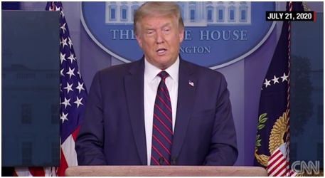 当地时间21日,特朗普出席白宫疫情简报会 图源:CNN