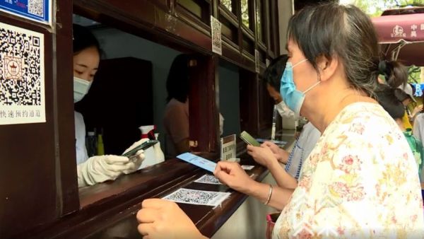 这两天,苏州留园变得热闹起来,一辆辆旅游大巴车载着外省游客来到这里,领略苏州园林的魅力。留园门口,工作人员一遍遍提醒着游客,戴好口罩,打开健康码。