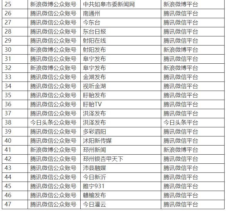 新增互联网新闻信息服务许可的腾讯微信公众账号名单(47个)