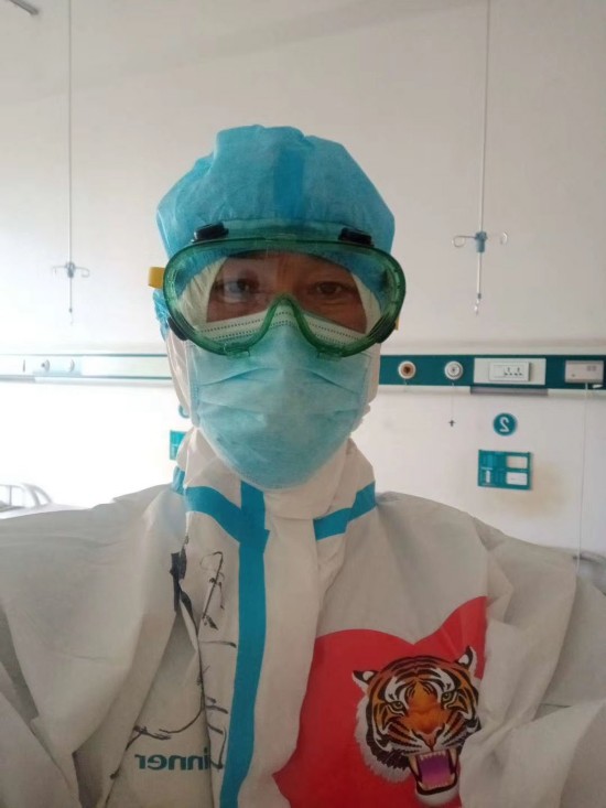 李司军在牡丹江红旗医院做志愿者。受访者供图