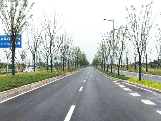 记者在扬子津路东段看到,宽阔的道路中分带内,已栽上桂花等树木,机非分隔带内栽上了约一人高的大叶黄杨。扬子津路跨古运河大桥桥面机非分隔带内,栽种了小灌木和菖蒲、月季等植被。桥西侧的机非分隔带内,栽种了一株株大叶黄杨。在邗江南路以西段面,机非分隔带内栽种的是榉树,地面栽种了麦冬等地被植物,还布置了一些草花。扬子津路行道树全部为榉树,共栽种约1600株,全线新增绿化面积约7万平方米。