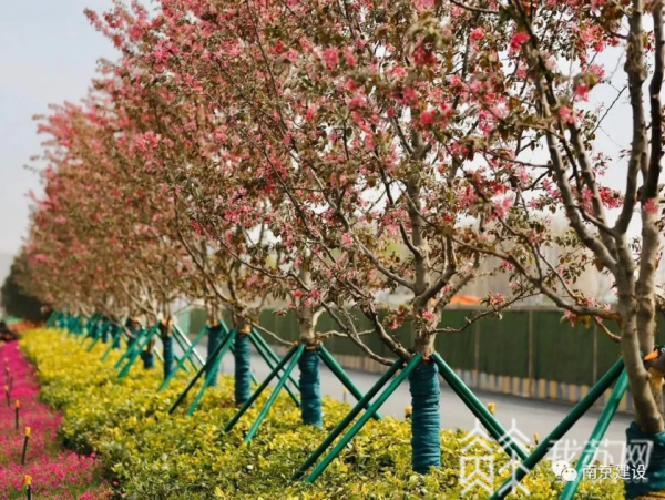 栽种栾树、紫薇、海棠、梅花、樱花、桃花等季节性彩色植物,全线增种260多万平方米草皮及灌木和15万株乔木,营造出“四季有景、三季开花”的鲜明景观层次和开阔视觉效果。