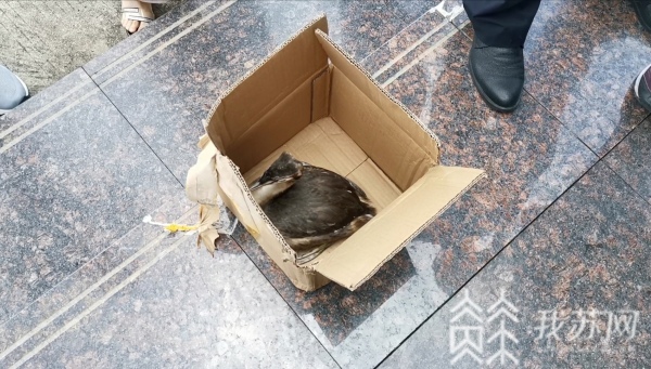 7月23日下午,盐城市公安边防支队王港边防派出所值班民警徐玉强接到110指令称:该辖区某企业员工徐静岗在厂区内发现了一只很奇怪的鸟不能飞行,请求救助。