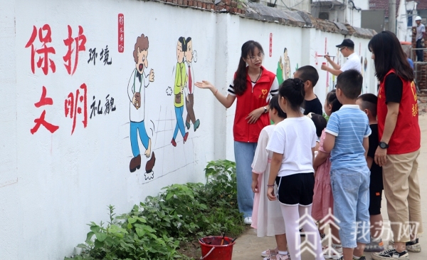 “你看,他在公共场合鞋子都掉了……我们要做一个有文明,讲礼貌小朋友。”在村里的手绘墙边,大学生志愿者孔令蔚正在给村里的孩子们讲解墙上漫画的含义,孔令蔚告诉记者,自己是江苏师范大学大三学生,利用暑假给村里孩子上课、做游戏是很有意义的事情,不仅小朋友能学到知识,她也能从中总结教育经验。“通过墙绘漫画讲故事的方式可以寓教于乐,你可能单单的教育他该怎么做,他们可能并不是能非常理解的很全面,但是如果我们通过这些墙绘教他学画画,然后看到这个小朋友是怎么做的,他行为好不好,我们应该怎么做,这样的话,小朋友结合他们自身的理解,一些道理根据绘画的形式,他们会更容易接受。”