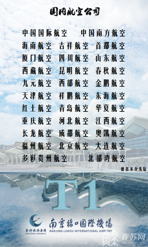 7月30日T1、T2的航空公司分配方案将按如下执行: