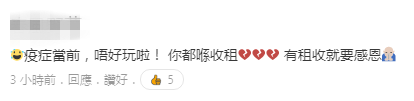 对于在这个时候有检测中心被业主要求撤销租约,有网友称,“疫症当前,不好玩啦!你都是收租,有租收就要感恩。”