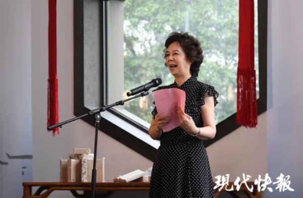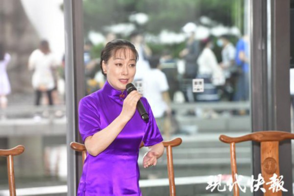 第三站,书香四溢的明书斋,两位名家正捧着《素昆》安静地阅读,气质优雅。原来,一位是著名舞蹈艺术家、中国舞蹈家协会副主席黄豆豆,一位是中国曲艺家协会副主席、苏州市评弹团副团长盛小云。