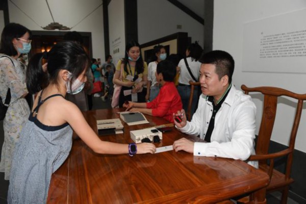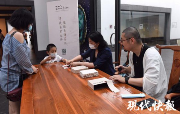 当天下午,每一位来到苏州博物馆的游客,都可以在入口处免费领取一份书签,里面包含名家大师的名单、路线指引图等信息。