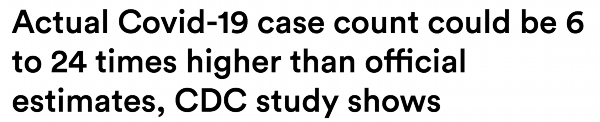 但7月21日,美国疾病控制和预防中心(CDC)发布的一项研究结果更是令人震惊:美国实际新冠感染人数可能为官方统计数据的6到24倍。