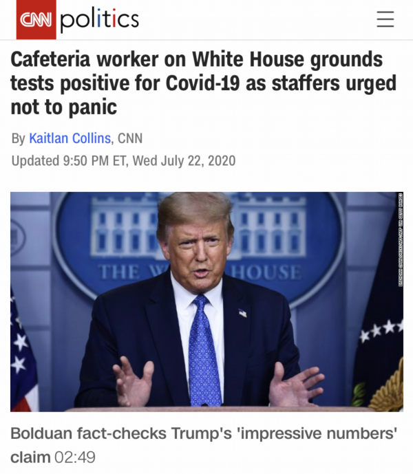 △CNN称,一名白宫雇员日前确诊新冠肺炎,其他工作人员试图平息恐慌