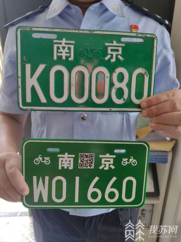 民警介绍说:2019年4月15日开始,南京市新上牌电动自行车全部配发带有RFID电子标签的新式号牌,2020年6月开始,全市快递、外卖配送电动自行车也在批量换发带有RFID芯片的新式专用号牌。配有RFID电子标签的电动自行车号牌,不但可以增强车辆防盗性能,而且号牌防伪性更高。