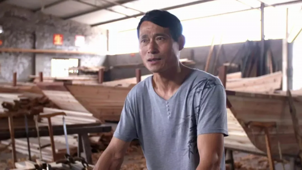 相传,自宋代起,竹泓就有了造船的手工作坊。周永干的爷爷是远近闻名的造船能手。耳濡目染中,年少的周永干学会了这门手艺,从14岁至今,他做过的船只不下千条。周永干制作木船,严格遵照祖训,十余道工序完全手工操作。