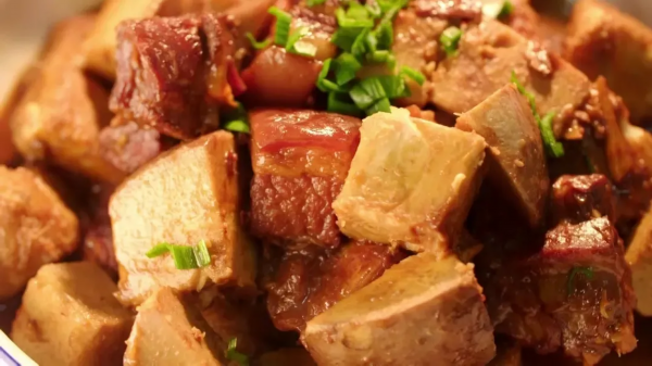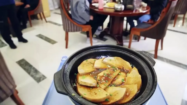 龙香芋的烹饪也极为简单,芋头去皮,切片后,基本不用其它辅料,浇上肉汁,文火慢炖即可。软糯香滑的芋头充分吸收肉汁的滋味儿,使之变得醇厚可口,美味异常。每每此时,浓浓芋香都会化作一缕乡愁,成为了记忆中故乡的味道。