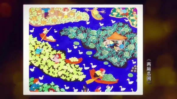 兴化垛田农民画在风格上糅合了苏南水乡的清秀和苏北田园的质朴,大胆地运用夸张 变形的艺术手法,形成了虚中见实、拙中见美、乡土气息浓郁的风格。