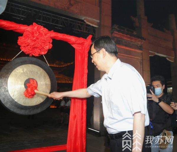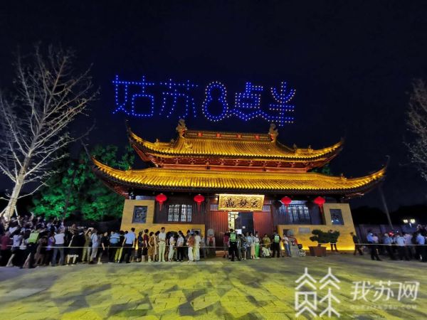 在玄妙观广场棂星门前,江苏省委常委、苏州市委书记蓝绍敏敲响了观前主街开街大锣。300架无人机随即升空,展示了“我爱苏州”“姑苏八点半”等字样及“东方之门”等建筑的造型。