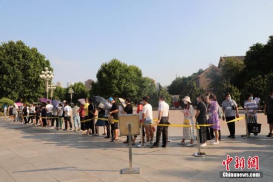 资料图:民众排起长队进行核酸检测。杨毅 摄