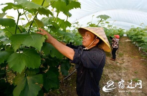 仲夏,宿迁市泗洪县朱湖镇朱北村扶贫产业园里,一排排整齐的钢架大棚成为一道美丽的风景,大棚里西瓜硕大、葡萄水灵,村民们正忙着采摘销售。