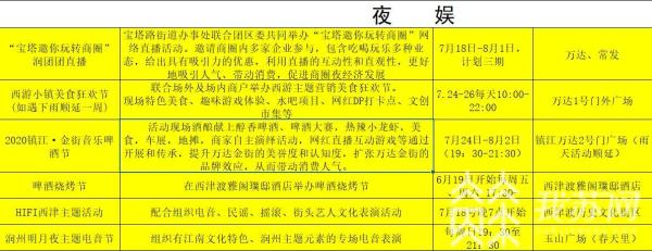 具体来看,“夜购”项目包括“阿润的市集”文创夜市、协信星光时代广场·星光夜市、“西津大市”地摊集市等;“夜娱”项目包括“宝塔邀你玩转商圈”润团团直播活动、金街音乐啤酒节活动、HIFI西津主题活动等;“夜读”项目有西津讲堂和“马副官的店”的文心品书活动;“夜跑”包括润州请您来健身、青少年冠军杯足球联赛等活动。