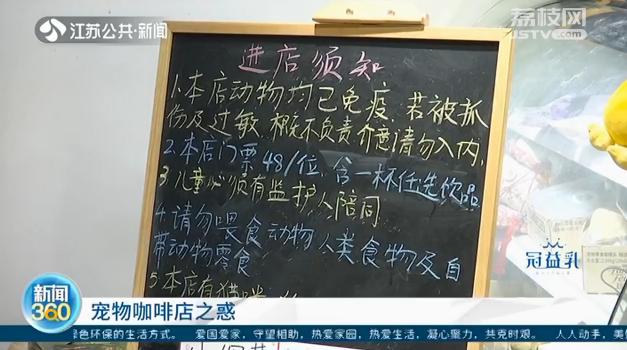 记者注意到,这家店在入口处就放着醒目的告示:本店动物均已免疫,若被抓伤及过敏,概不负责,介意请勿入内。