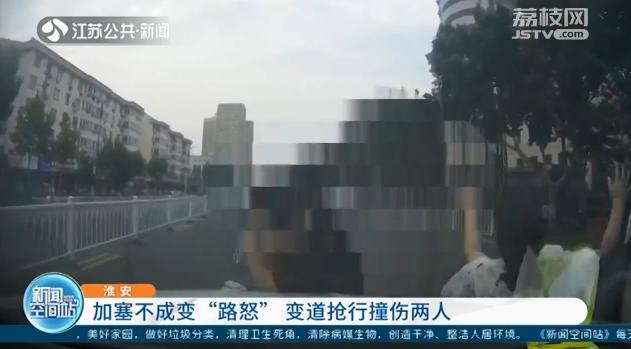 26号上午,在淮安市区北京北路,一名男子加塞变道遇阻后突然来了脾气,变道抢行,还将两名女子撞伤。