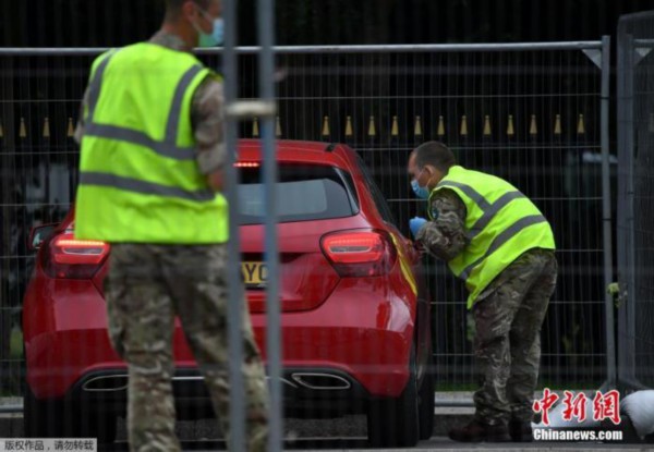 资料图:当地时间6月29日,英国武装部队在莱斯特维多利亚公园的移动式COVID-19测试中心帮助民众检测。