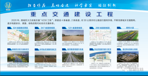 324省道宿迁西段、347省道宿城段、121省道宿城段、扬帆大道......还有更多的交通重点项目必将助力宿城腾飞。