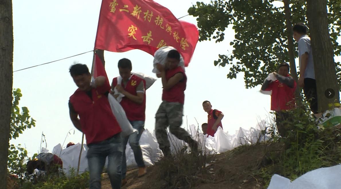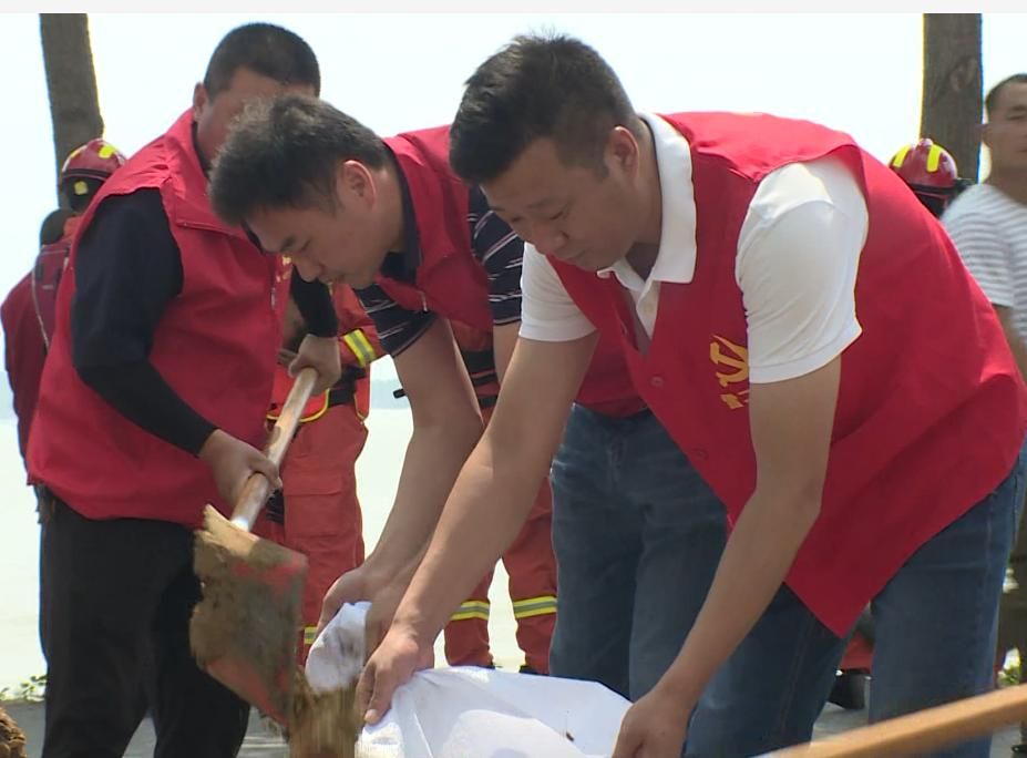 7月25日上午,记者在现场看到,他们冒着高温,正在铲土、装沙袋、搬沙袋,给险段进行加固。头上、身上都被汗水浸湿了,大家默契配合,紧张有序地扛袋运土筑坝。