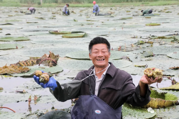 7月26日,在淮安区车桥镇卢滩村,芦家滩土地股份合作社收获了今年的第一批芡实。