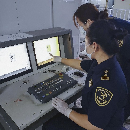 该邮件申报品名为“SHORTS”(短裤)。查验关员通过X光机过机图像发现,该邮件内除了装有衣物外,还有数个管状物和金属制品。经现场开拆检查,海关关员发现:邮件中装有一条牛仔短裤,裤兜里藏有内装棕黄色油状液体的封闭玻璃管4支,疑似电子烟管1支。初检结果显示,玻璃管内装液体为含有大麻成分的电子烟烟油。