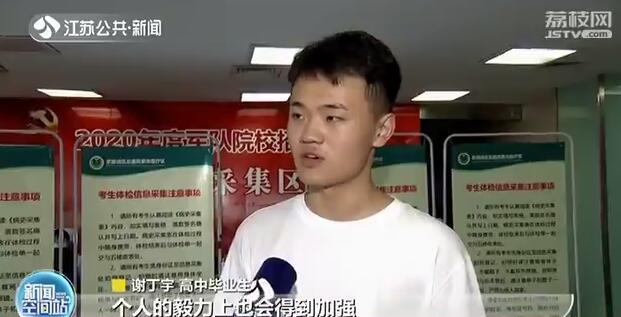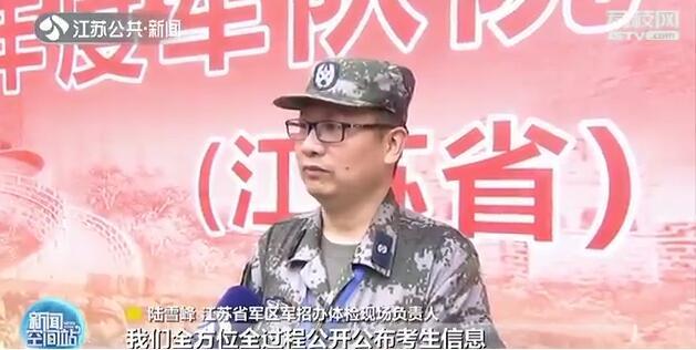 江苏省军区军招办体检现场负责人陆雪峰说:“我们全方位全过程公开公布考生信息,对考生政策进行解答。做到公开、公平、公正,希望广大优秀的高中学生来报考我们的军队院校,用无悔的青春 来书写我们光辉的光荣的军旅人生。”