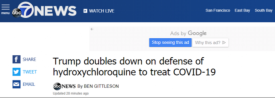 ABC:特朗普加倍力推羟基氯喹治疗新冠肺炎