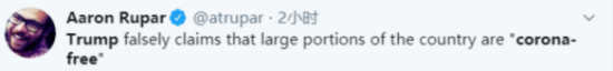 “特朗普错误的声称大部分地区没有新冠病毒。”