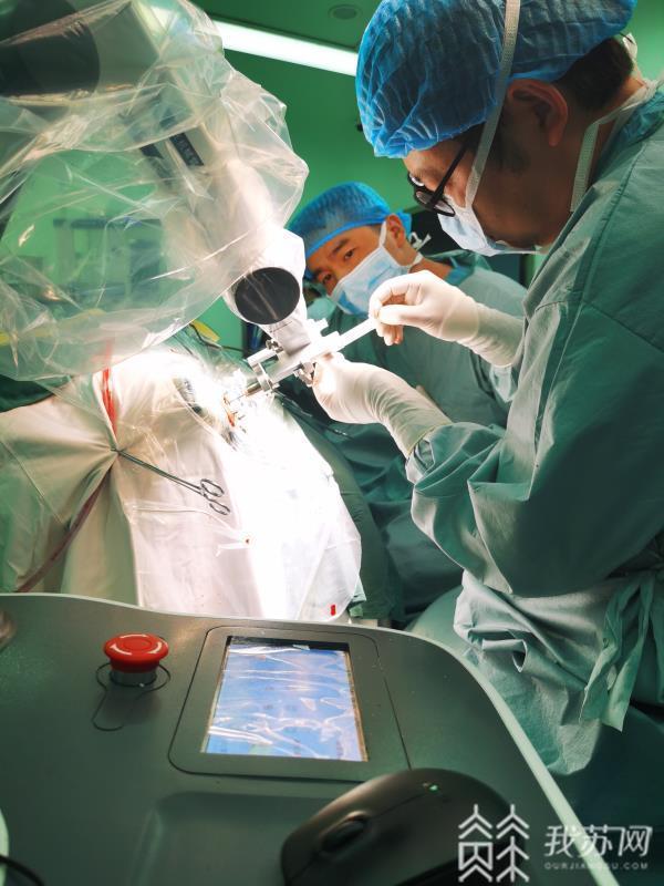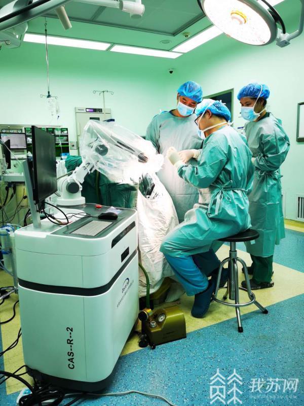 近日,在南京市第一医院神经外科主任樊友武教授的指导下,由副主任医师吴鹤鸣和唐勇医师借助先进的手术机器人为病人李奶奶进行胼胝体压部病变穿刺活检术。