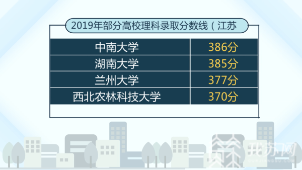 以2019年为例,省内南京大学、东南大学理科分数线分别为399分、398分,而地处省外的C9联盟高校中,西安交通大学、哈尔滨工业大学本部校区在江苏理科录取分分别只有395分和392分。中南大学、湖南大学、兰州大学、西北农林科技大学是原985院校,去年在江苏理科录取分分别只有386分、385分、377分和370分。有名校情结的考生,不妨放眼省外。